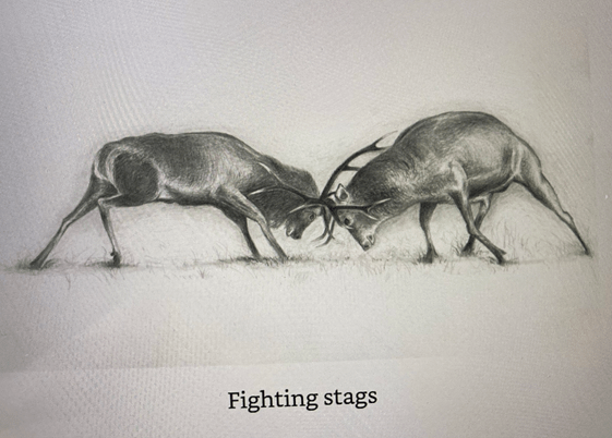 During mating season, called the “rut”, male stags will compete against each other to mate with females, called hinds, which the stags guard in harems. A few stags will have harems of hinds whilst other stags will have none.