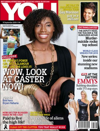 This issue is not restricted to trans-women though. The South African athlete Caster Semenya had to undergo testing to determine her sex after other runners complained about her dominance in athletics, which included winning the 800m Gold at the 2009 World Championship as well as in the 2012 and 2016 Olympics. Pierre Weiss, the General Secretary of the International Association of Athletics Federations (IAAF) – now known as ‘World Athletics’ – clumsily remarked Semenya “is a woman, but maybe not 100 per cent.” Possibly to counter claims she was a man, Caster Semenya appeared in the South African magazine You wearing make-up and a dress to appear more feminine. This can be seen below.